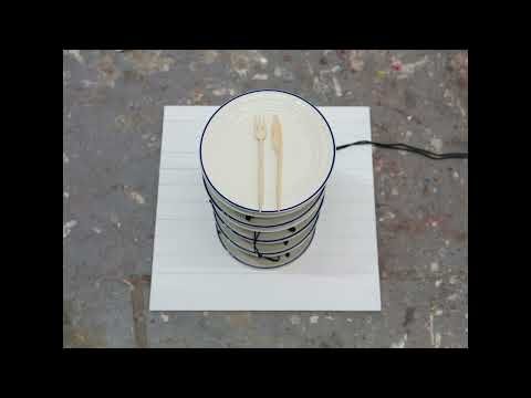 speakers, ceramic plates, carved pine fork and knife, painted pine plinth, live broadcast of kec60 noaa weather report